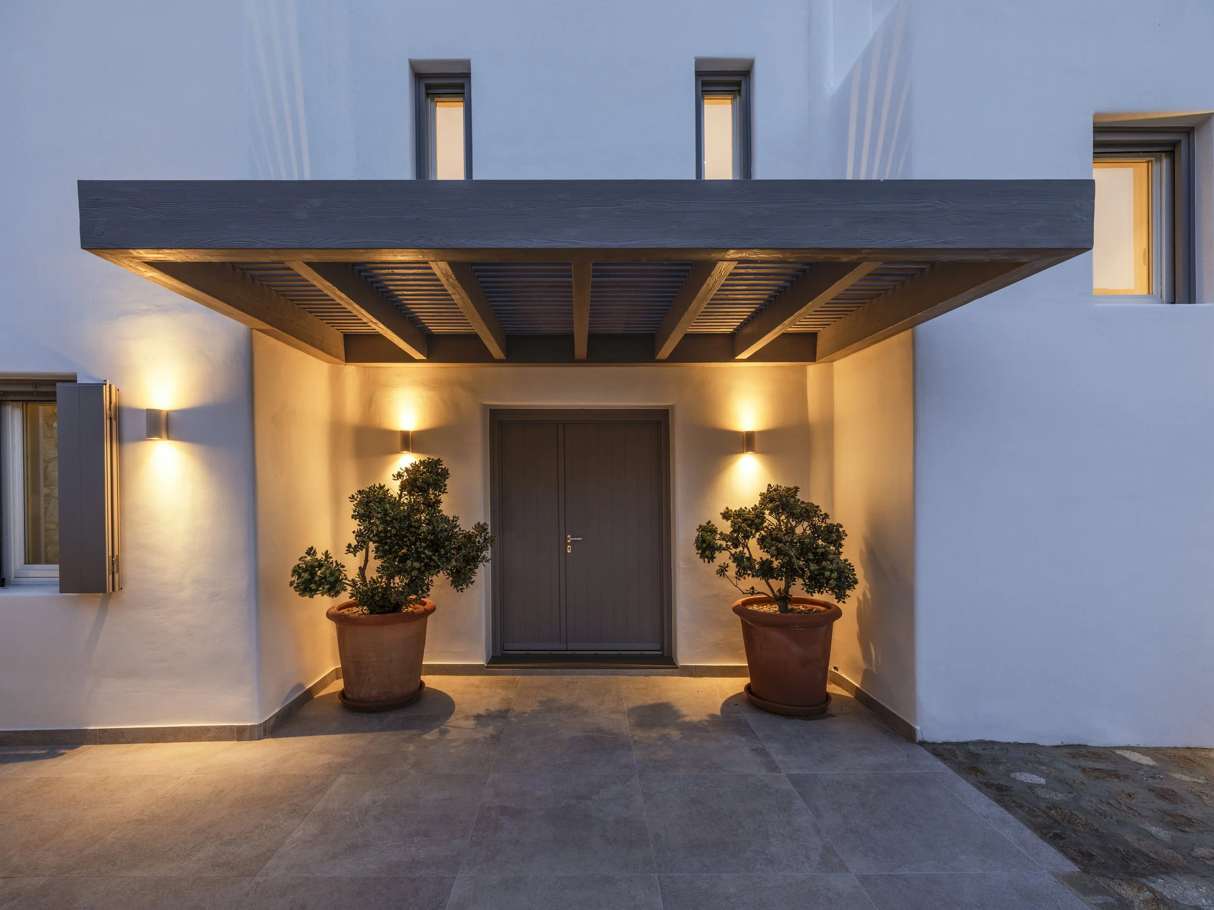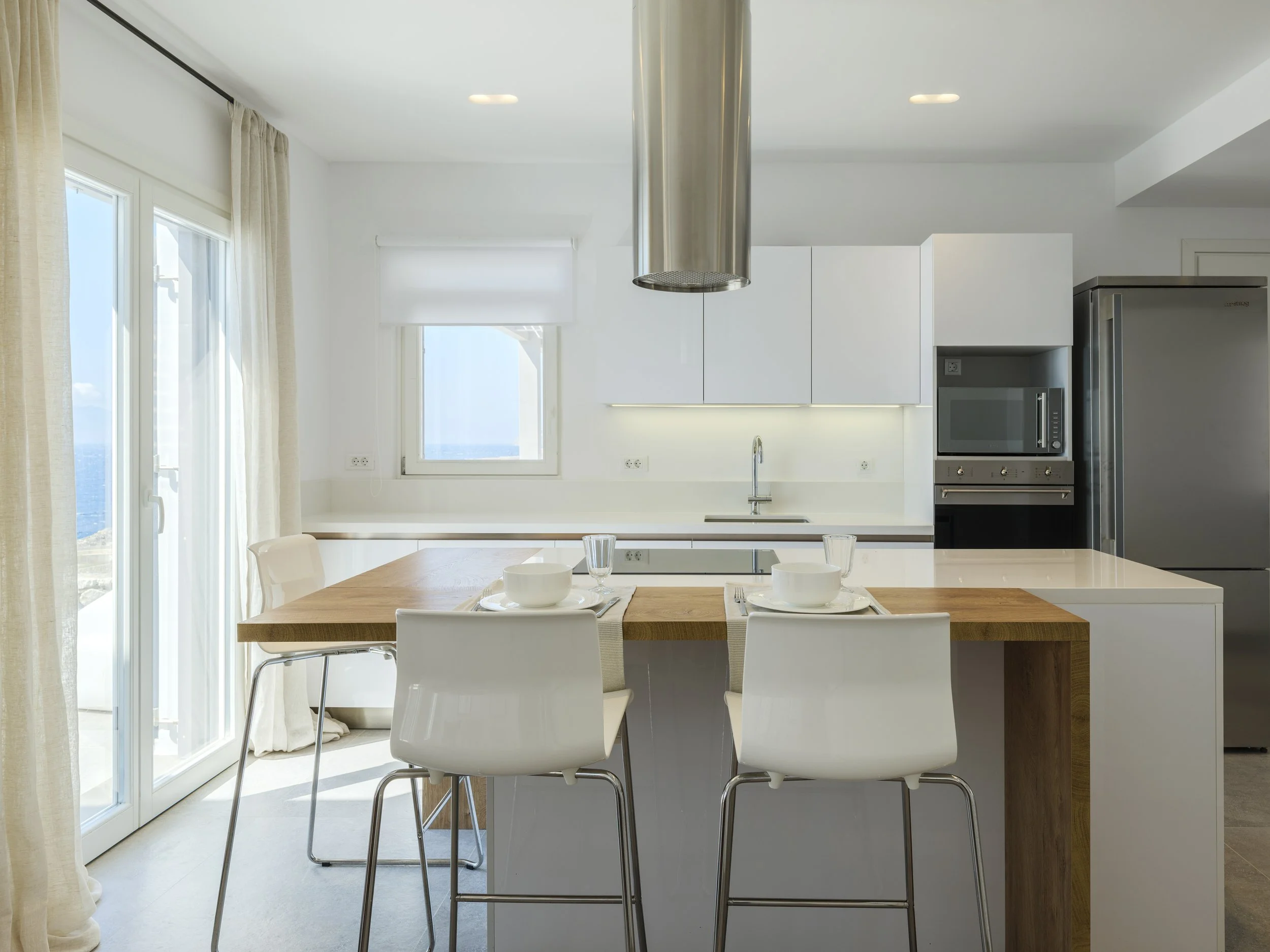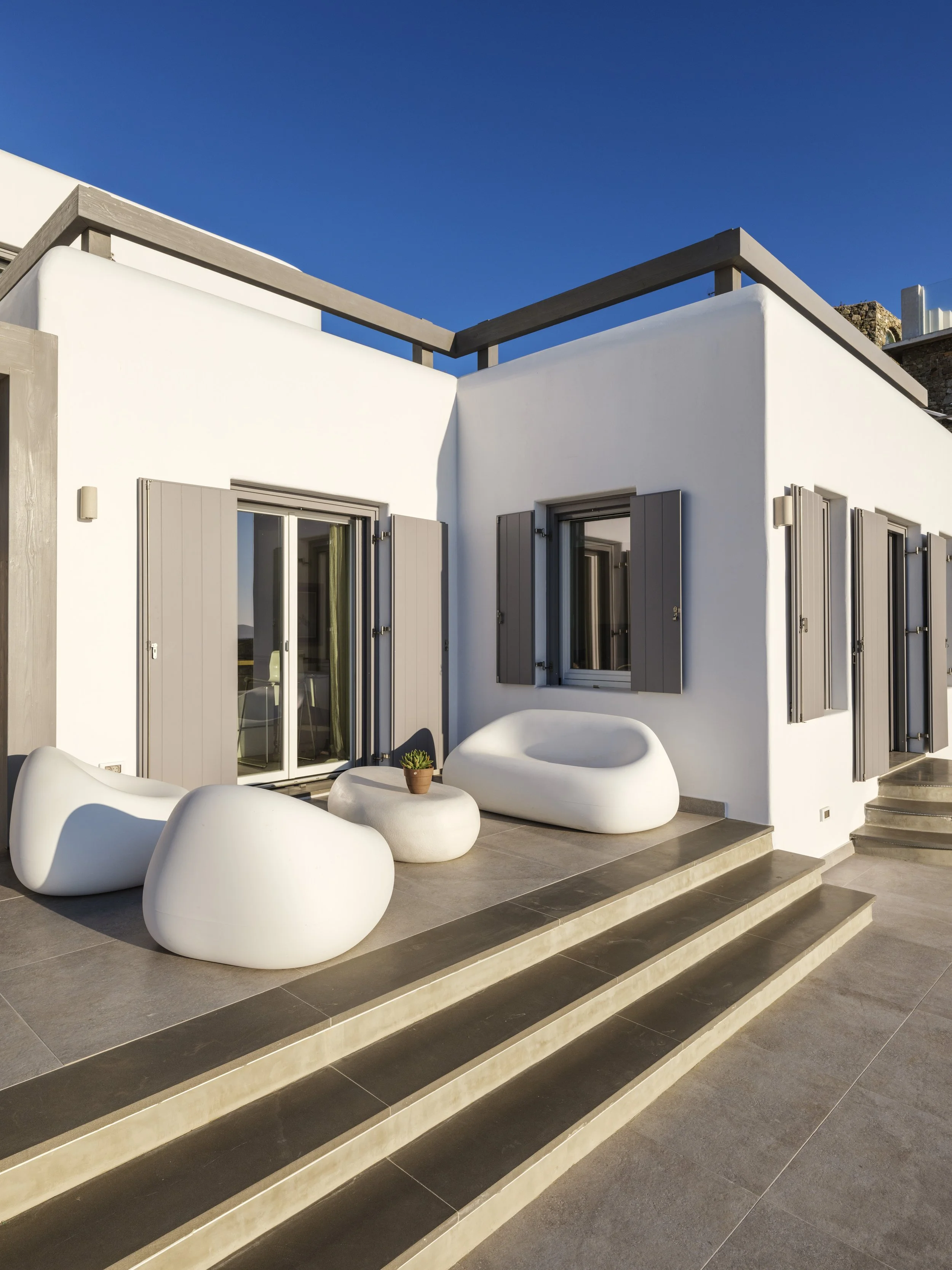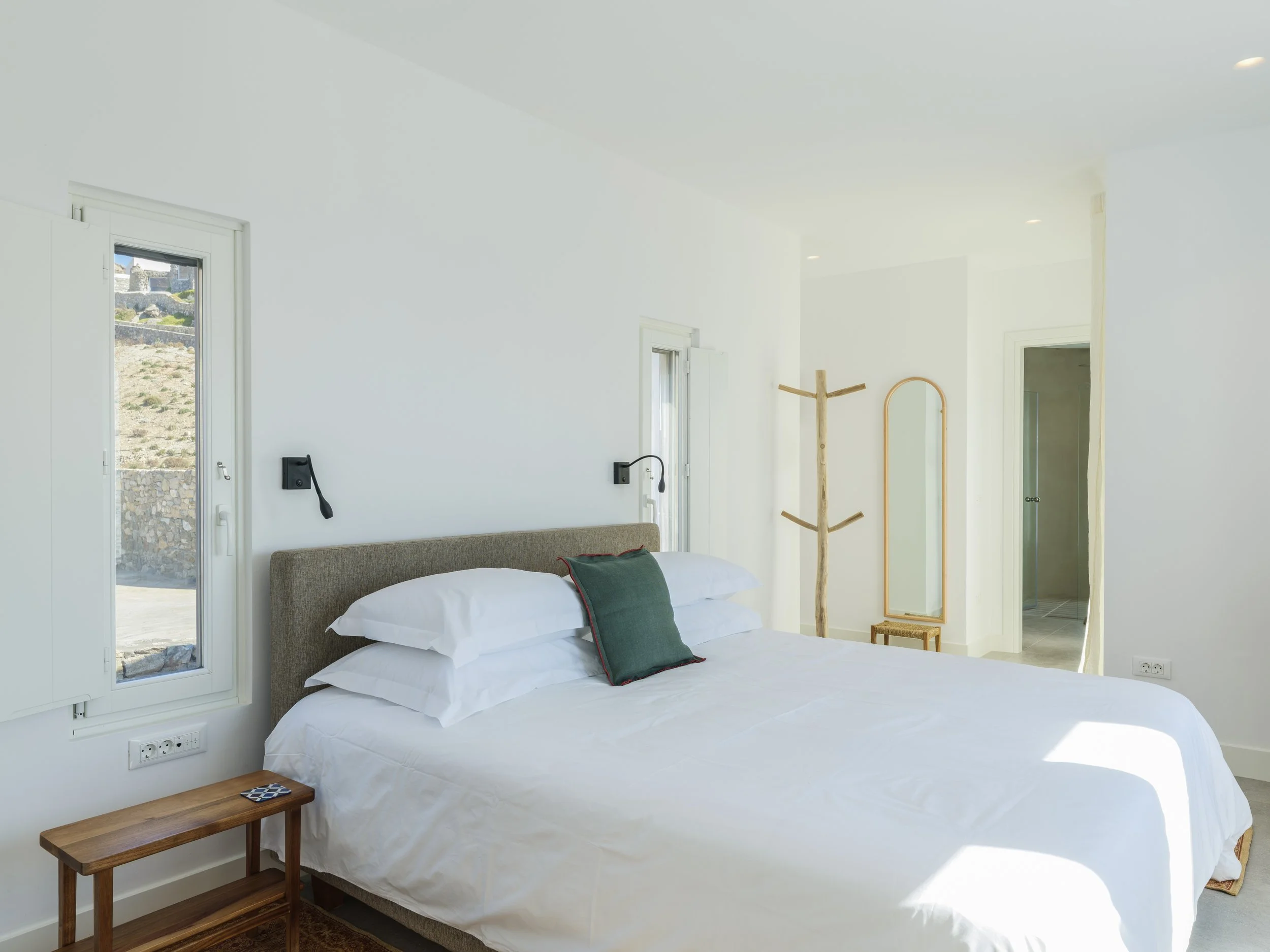 Located at Pouli, this newly constructed two-story villa (300m2, guest room with kitchenette 70m2 at an extra cost) offers unobstructed sea views, complete seclusion, and close access to Mykonos town. It gazes across the Aegean waters towards the islands of Tinos, Rhinia, and Delos enjoying amazing energizing sunsets and provides direct access to a private beach.